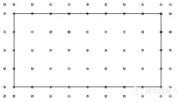 顶部布灯方式即单个灯具均匀布置在运动场地上空,宜选用对称型配光的灯具,适用于主要利用低空间,对地面水平照度均匀度要求较高,且无电视转播要求的体育馆。灯具的布置平面应延伸出场地一定距离,用以提高场地水平照度均匀度。见图1。